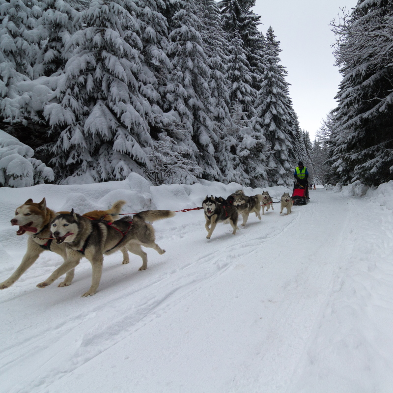 Traîneau à chiens : l'attelage est composé de 4 à 6 chiens pour un équipage de 2 adultes (et jusqu'à 2 enfants, s'il s'agit d'une famille). Chaque équipage désigne son pilote qui doit être âgé de plus de 14 ans et être assez lourd pour arrêter le traîneau. Pour des raisons de sécurité, le musher a le droit de ne pas accepter un pilote en raison d'un poids trop faible ou pour toutes autres raisons impliquant la sécurité. Bien évidemment, les clients pourront faire l'activité en tant que passager et profiter tout autant de cette balade féerique.