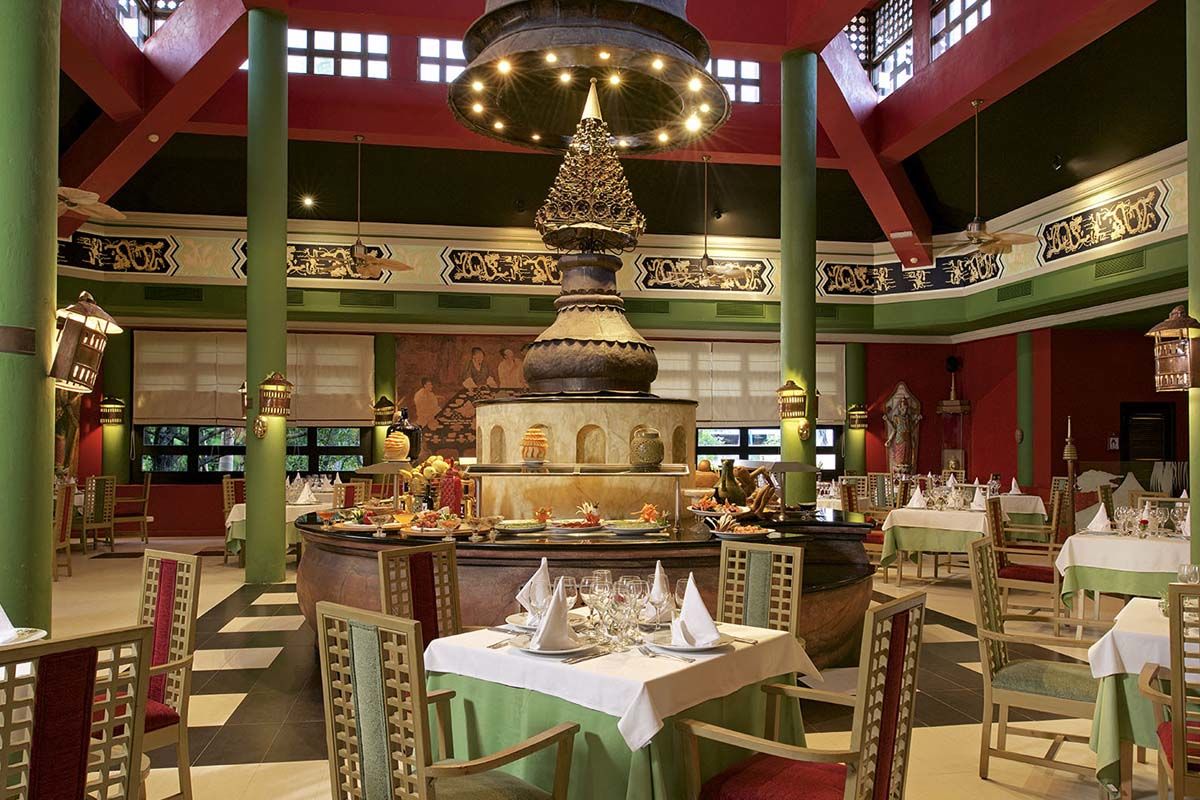 Les saveurs2 restaurants buffet, 7 restaurants à la carte le soir sans réservation, selon disponibilité (asiatique, mexicain, gourmet, smoke house, italien, américain, restaurant de plage midi et soir), 6 bars. Tenue correcte exigée.