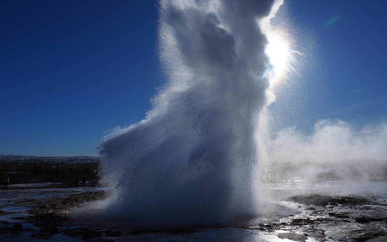 Poursuivez votre visite vers le site des geysers, où le Strokkur, le plus actif des geysers, émet une colonne d'eau chaude de 20 mètres de haut toutes les 7 à 10 minutes. Vous pourrez également observer de nombreux phénomènes naturels comme les sources d'eau chaude, les mares de boue et eaux bouillonnantes, le soufre à l'état pur. Ensuite, direction Gullfoss, « la chute d'Or », où vous apercevrez la Hvítá - « la rivière blanche » magnifique cataracte se précipitant dans un profond canyon basaltique. Profitez de ce moment pour une promenade sur le site des cascades.
