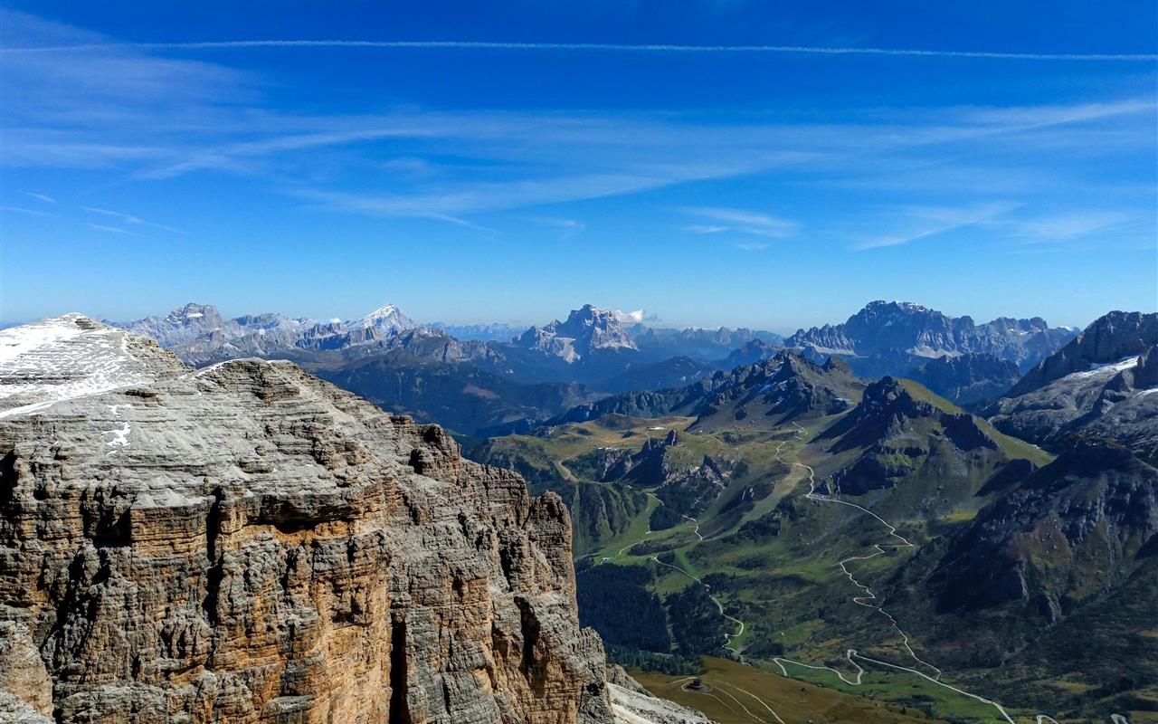 Col Sella pour admirer l'extraordinaire panorama de 360° sur la région des Dolomites et ses sommets tout autour :