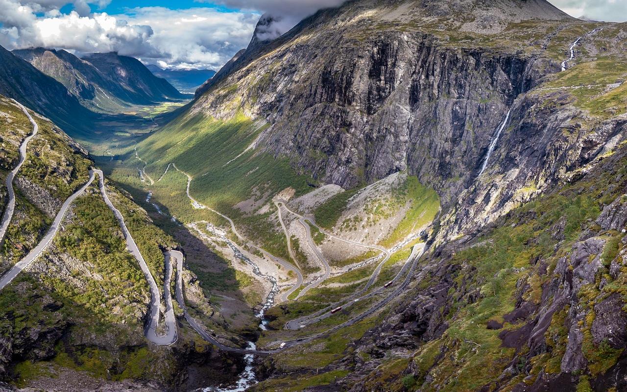 Route des Trolls* » serpente à travers 11 lacets spectaculaires, s'élevant à plus de 850 mètres d'altitude dans un décor de cascades et de parois abruptes. Selon la tradition locale, ces montagnes seraient le royaume des trolls et autres créatures des légendes scandinaves...