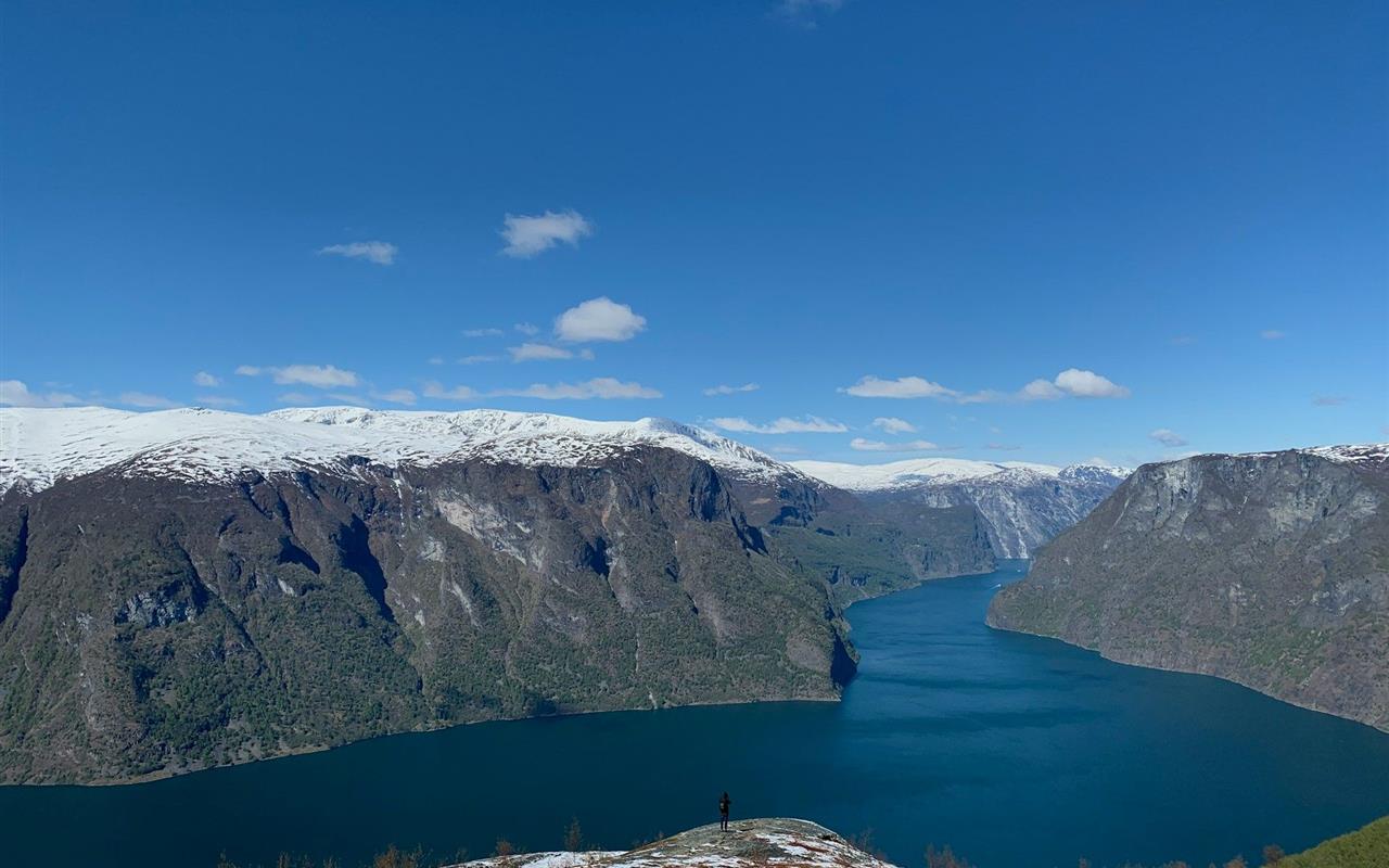 Nærøyfjord, l'un de ses bras les plus étroits et spectaculaires, classé au patrimoine mondial de l'UNESCO. Falaises vertigineuses, fermes isolées et cascades élancées composent un tableau d'une beauté saisissante.