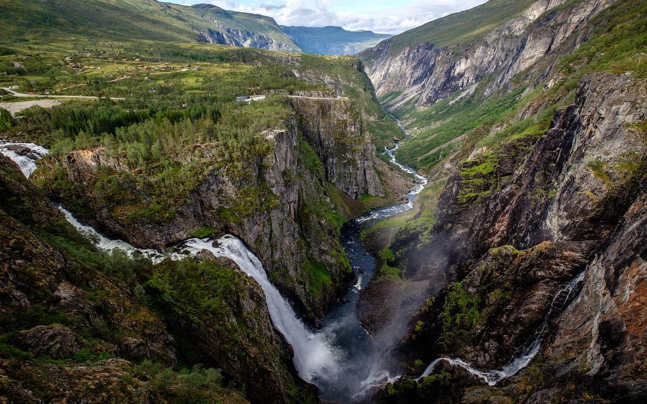 cascade de Vøringsfoss, dont les eaux se jettent avec fracas dans un profond canyon.