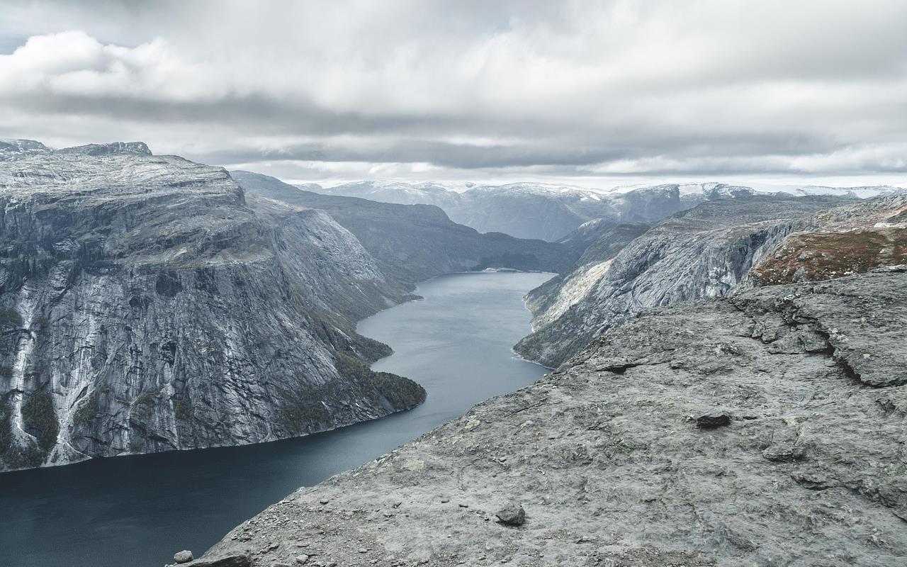 unique Trollfjord, l'une des attractions naturelles les plus visitées de la région. Ce fjord mesure 2 km de long et seulement 100 mètres de large au plus étroit. Les montagnes escarpées entourant le fjord mesurent entre 600 et 1 100 mètres d'altitude.