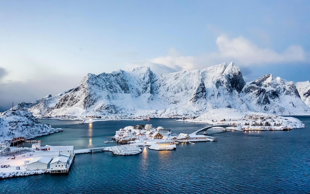 découverte des îles Lofoten, véritables joyaux naturels dominés par de majestueux sommets enneigés plongeant dans la mer.